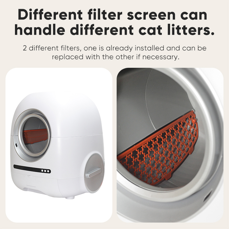 9.Two sifters options are suitable variety of cat litter(Pattern net: sodium-based mineral litter, bentonite, vertical bar net: tofu, mixed litter)